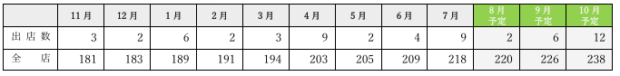 また、全国での新規出店のニーズもあり、8月以降の出店予定として、8月2店舗、9月6店舗、10月には12店舗の出店を予定しており、これにより2025年10月期、60店舗の新規出店となる見込みです。
