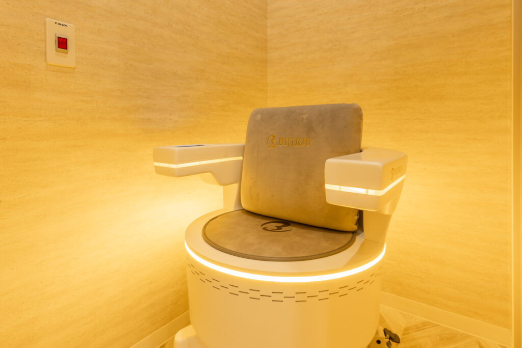 服を着たまま座るだけで「筋肉+脂肪」両方にアプローチできます。なかなか鍛えることのできない骨盤底筋や下半身を電磁パルスの刺激で座るだけで鍛えることができる美容マシンです。