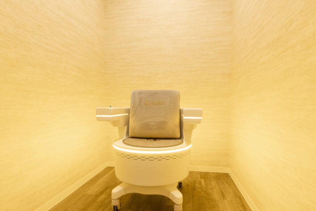 服を着たまま座るだけで「筋肉+脂肪」両方にアプローチできます。なかなか鍛えることのできない骨盤底筋や下半身を電磁パルスの刺激で座るだけで鍛えることができる美容マシンです。